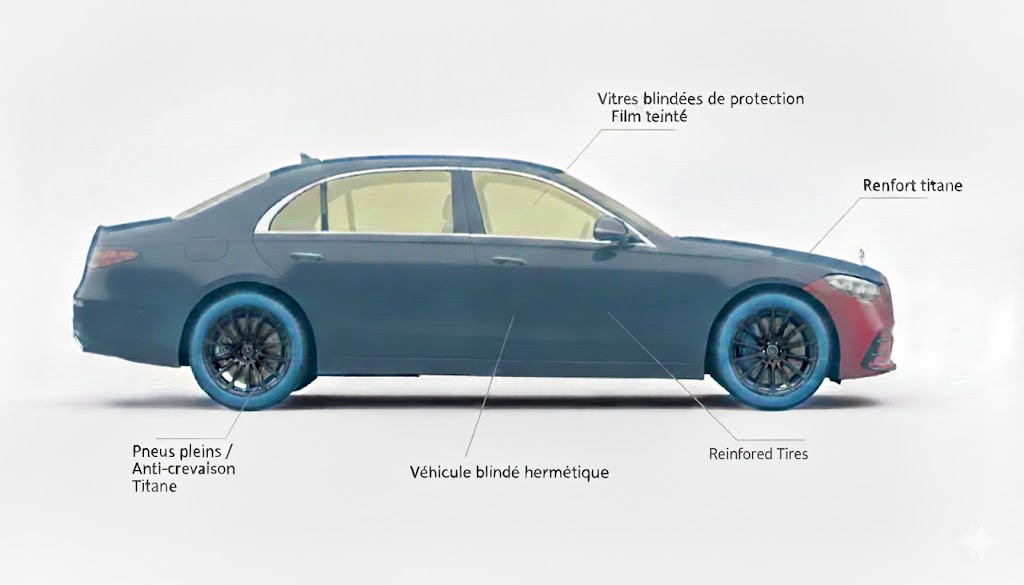 Flotte de véhicules blindés certifiés pour les missions à risque. Discrétion totale, confort préservé et niveau de protection adapté aux menaces identifiées.